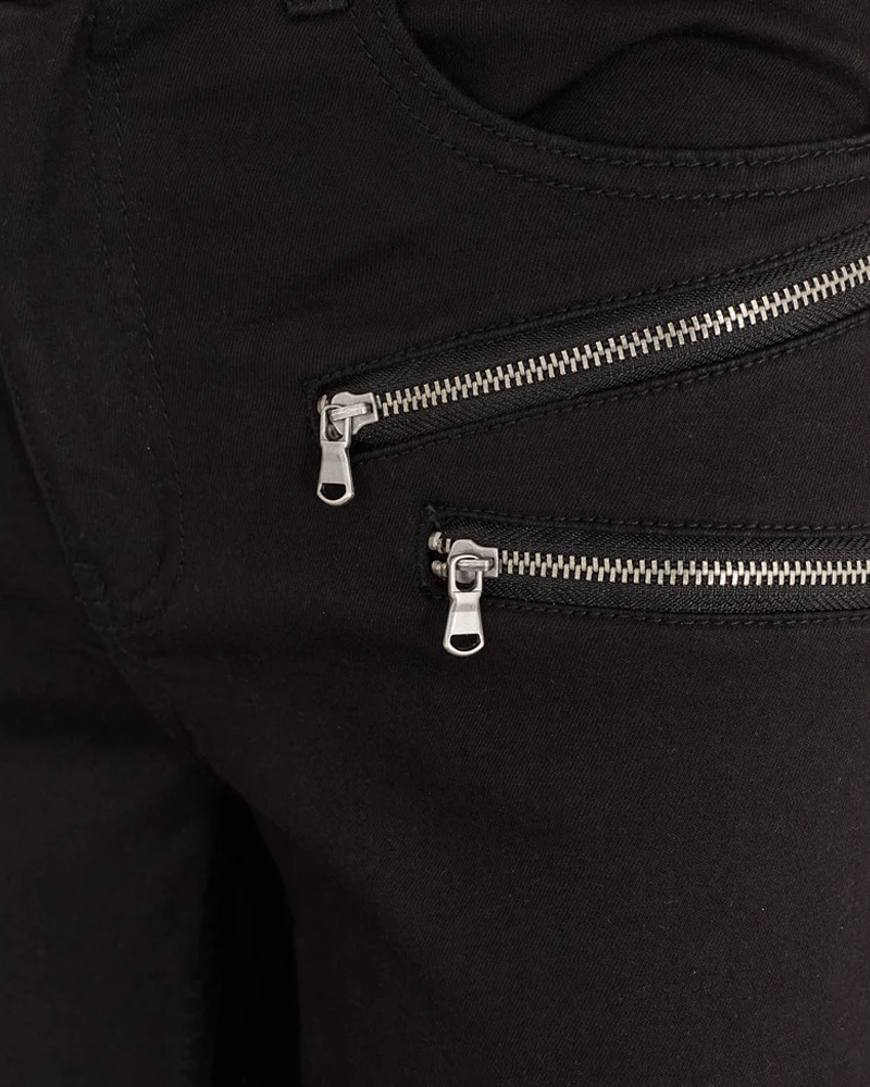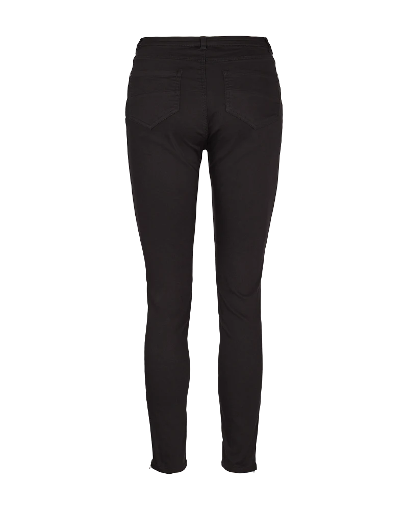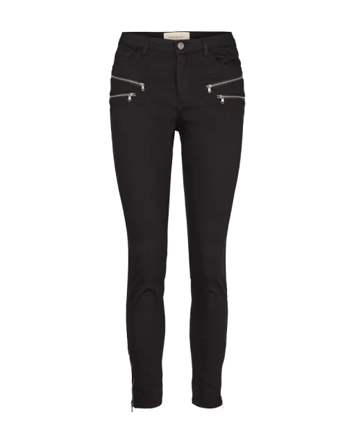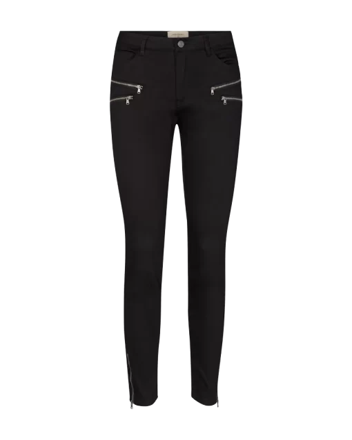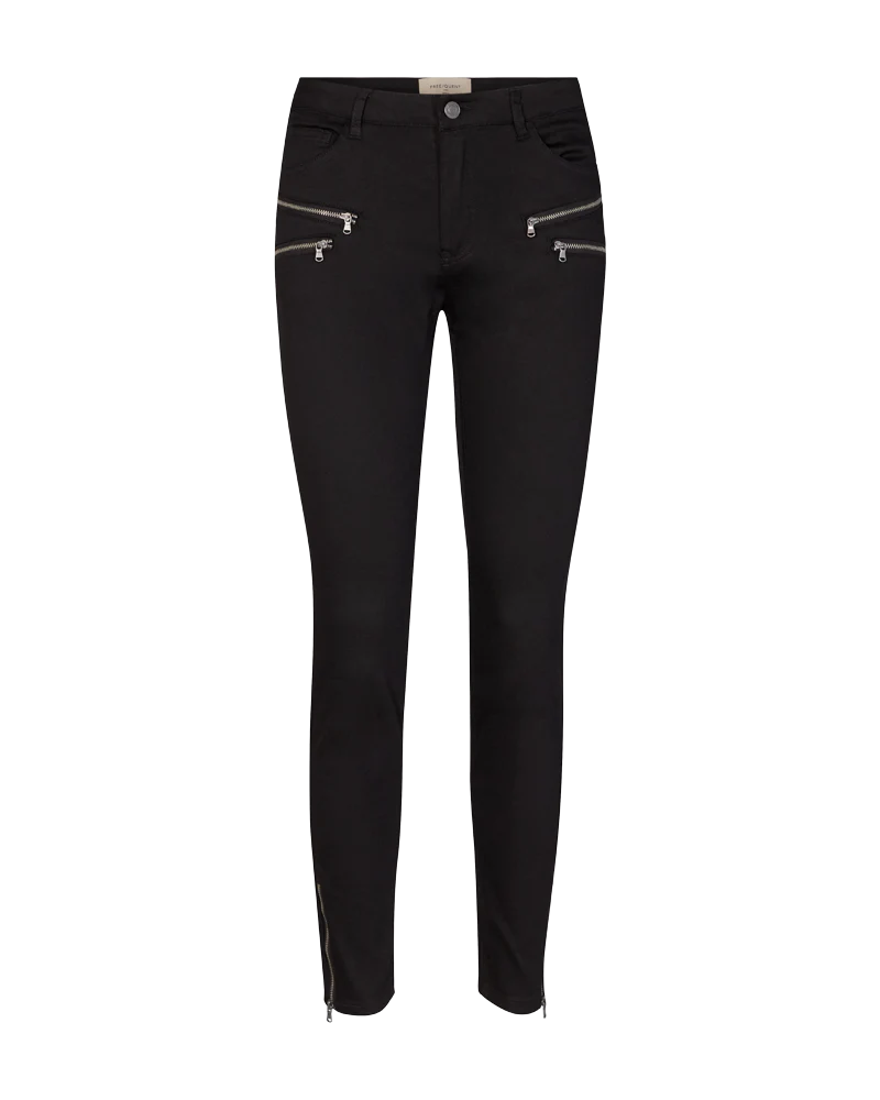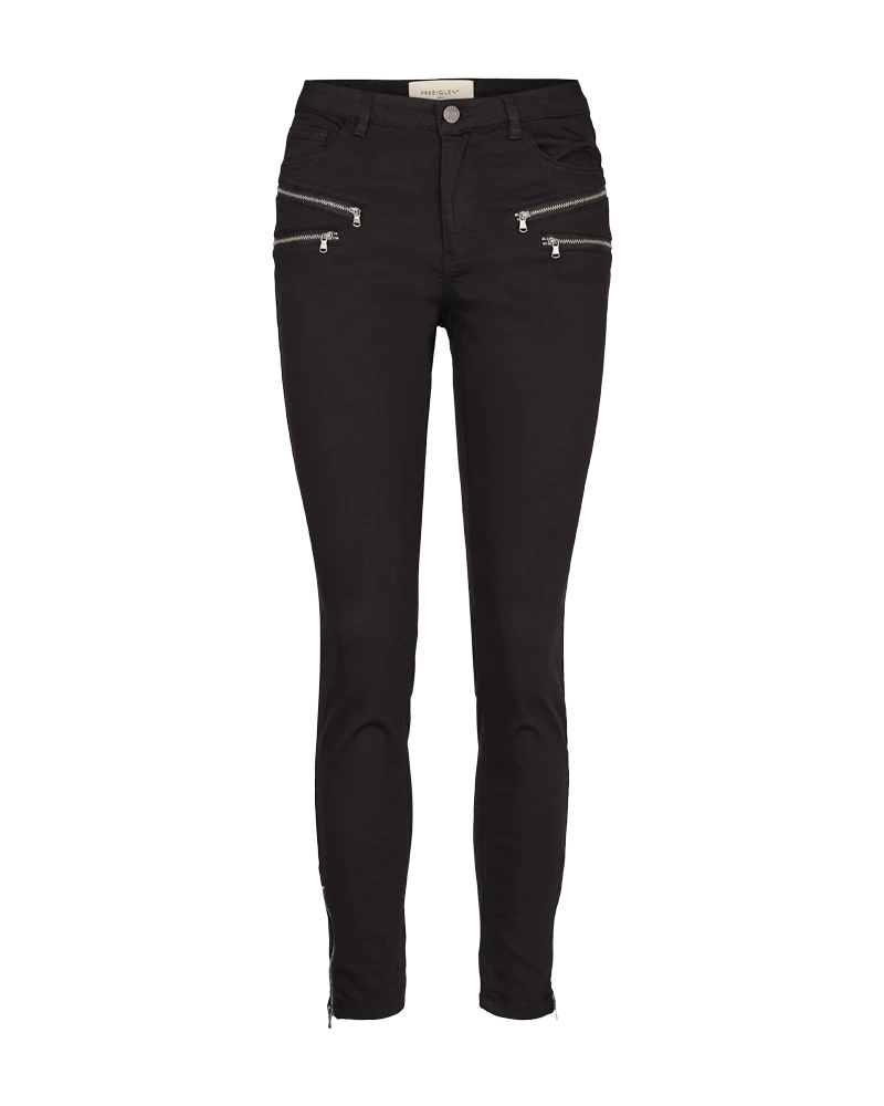 Bukser fra Freequent i en lækker kvalitet. Bukserne er en klassisk '5 pocket model' med 7/8 længde, lynlås- og knaplukning på fronten samt dekorative lynlåsdetaljer. Et par elegante bukser i en skøn kvalitet. 5 pocket model 7/8 længde Lynlåslukning Knaplukning Lynlåsdetaljer