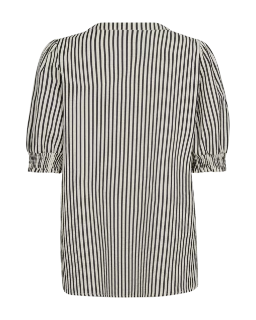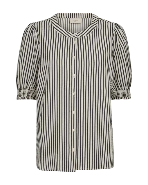Skjorte fra Freequent i en let kvalitet med et stribet print. Skjorten har korte pufærmer med smock cuff, en rund halsudskæring, knaplukning med en fin knap i toppen samt en elegant, løs pasform. Korte pufærmer Rund halsudskæring Knaplukning Løs pasform Stribet