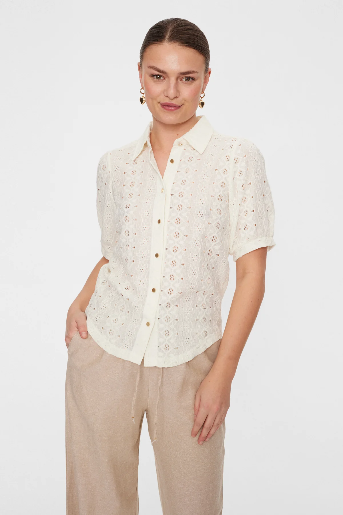 Freequent Fqbloss – Skjorte Med Blonder – Hvid Tofu | Kvinder Skjorter