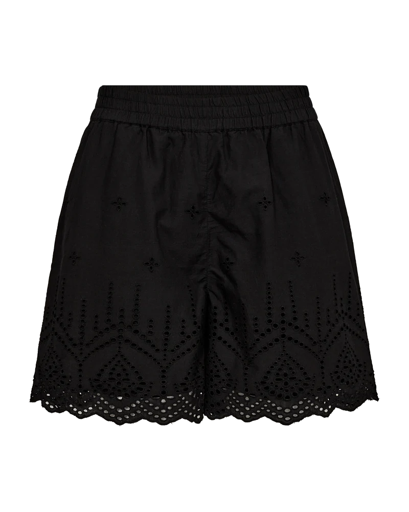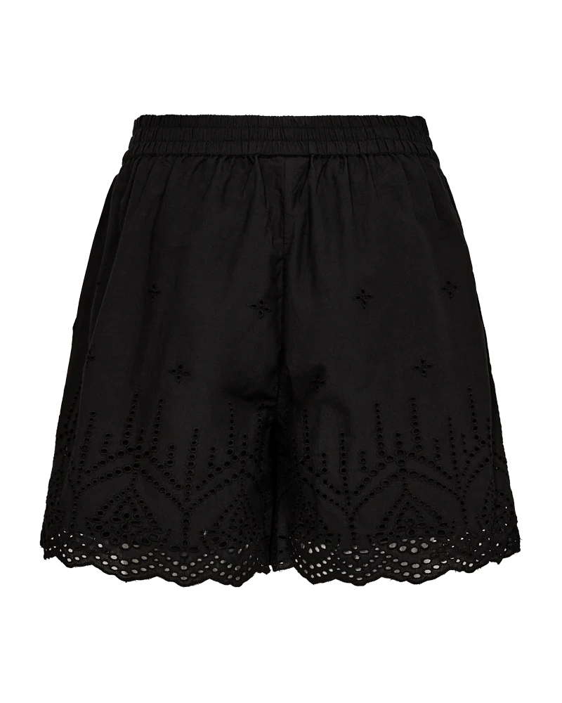 Shorts fra Freequent i en blød kvalitet med fine blondedetaljer. Shortsene er enkle i modellen med elastik i den høje talje, sidelommer samt en løs pasform. Løs pasform Høj talje Elastik i taljen Sidelommer Blondedetaljer