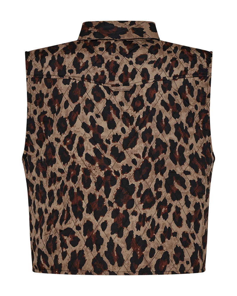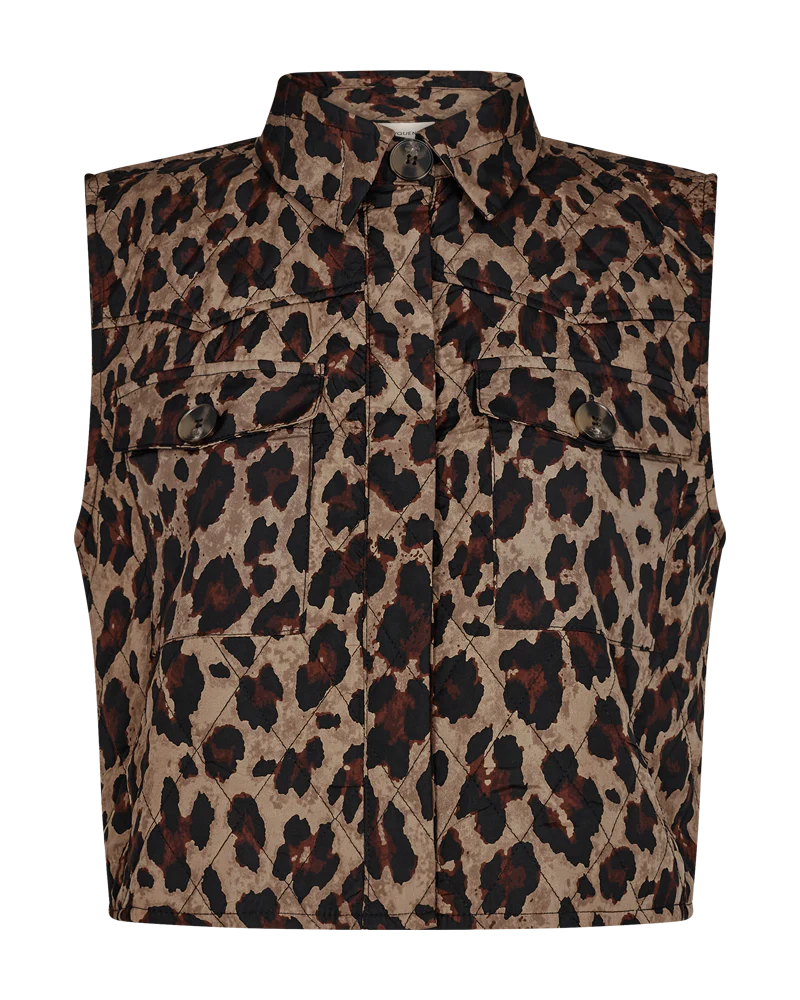 Vest i en blød, let vatteret kvalitet med det fineste dyreprint. Vesten er enkel i modellen med en løs pasform, en skjult knaplukning på fronten, krave samt brystlommer. En skøn, kort vest i en lækker kvalitet. Let vatteret Dyreprint Løs pasform Kort Krave Brystlommer