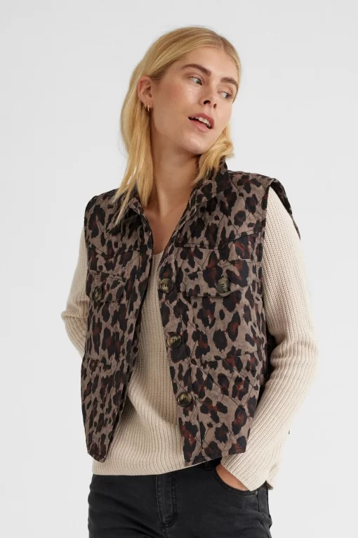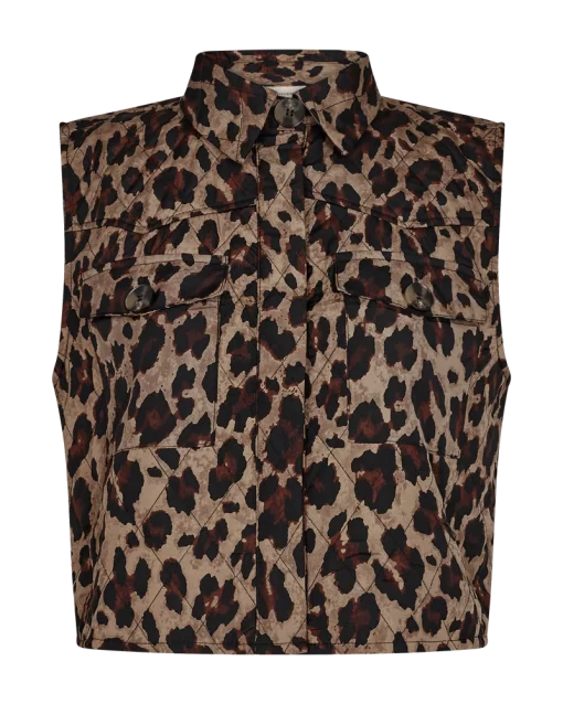 Vest i en blød, let vatteret kvalitet med det fineste dyreprint. Vesten er enkel i modellen med en løs pasform, en skjult knaplukning på fronten, krave samt brystlommer. En skøn, kort vest i en lækker kvalitet. Let vatteret Dyreprint Løs pasform Kort Krave Brystlommer
