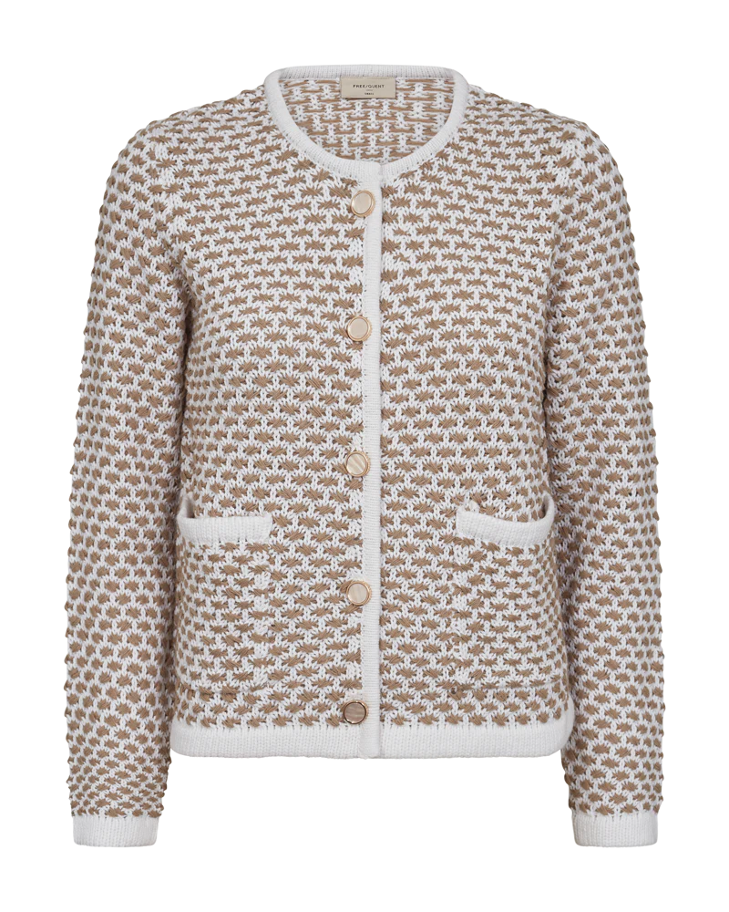 Cardigan fra Freequent i en strikket kvalitet med et flot mønster. Cardiganen har lange ærmer, frontlommer, ribkanter samt elegante knapper på fronten, der giver en flot effekt. Lange ærmer Knaplukning Frontlommer Ribkanter Strikket mønster