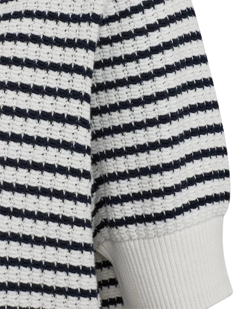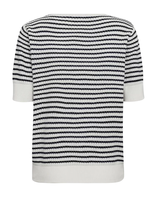 Pullover fra Freequent i en blød, finstrikket kvalitet med strukturmønster og striber. Pulloveren er enkel i modellen med korte pufærmer, en rund halsudskæring, brede ribkanter samt en elegant, løs pasform. Korte pufærmer Rund halsudskæring Løs pasform Ribkanter Strukturmønster Stribet
