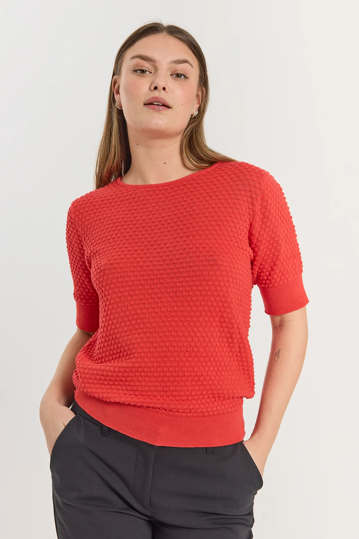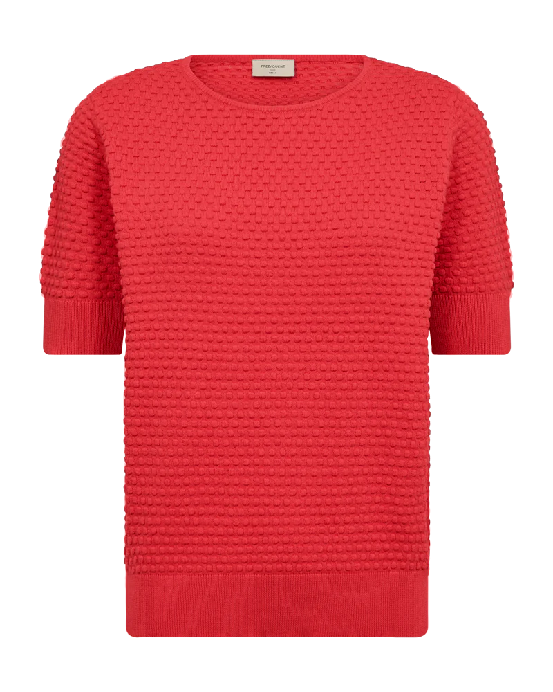 Pullover fra Freequent i en blød kvalitet med en prikket struktur. Pulloveren er enkel i modellen med korte ærmer, en rund halsudskæring, ribkanter samt en elegant, løs pasform. Korte ærmer Rund halsudskæring Løs pasform Ribkanter Prikket struktur