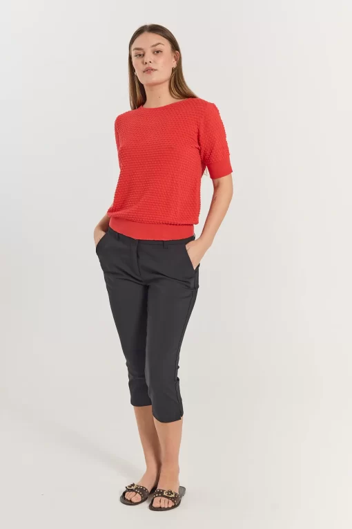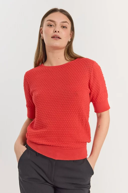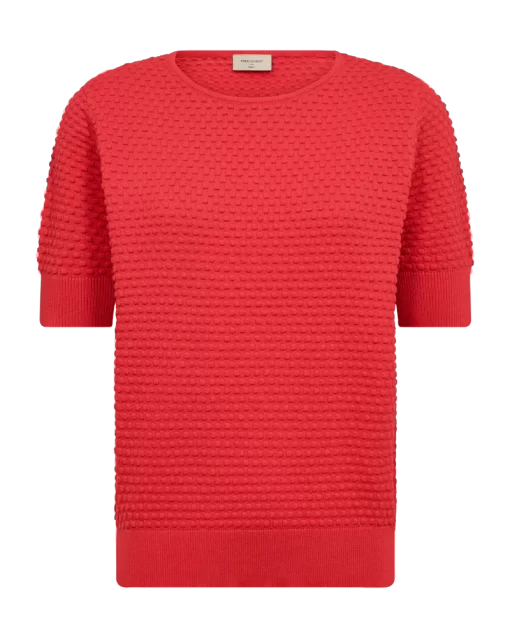 Pullover fra Freequent i en blød kvalitet med en prikket struktur. Pulloveren er enkel i modellen med korte ærmer, en rund halsudskæring, ribkanter samt en elegant, løs pasform. Korte ærmer Rund halsudskæring Løs pasform Ribkanter Prikket struktur