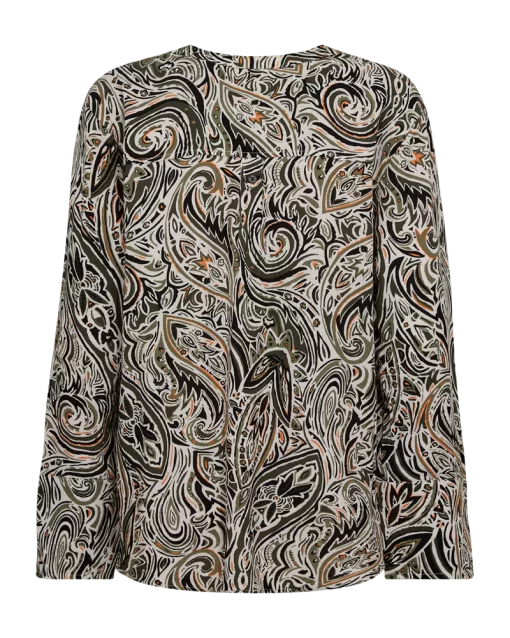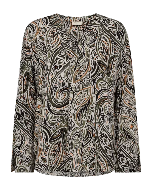 Bluse fra Freequent i en blød kvalitet med et flot print. Blusen har en elegant, løs pasform, V-udskæring med læg samt lange ærmer med slids i cuffen. Lange ærmer V-udskæring Løs pasform Print Slidser