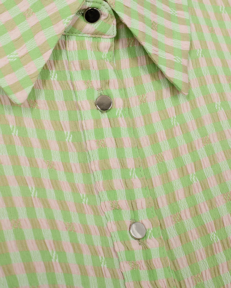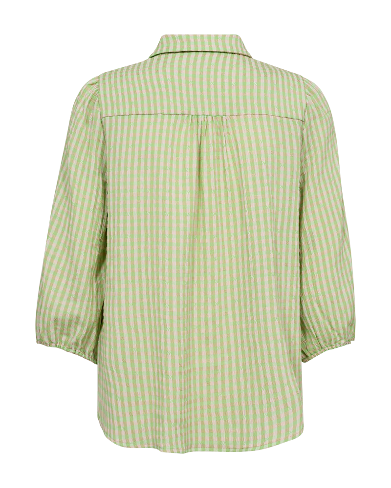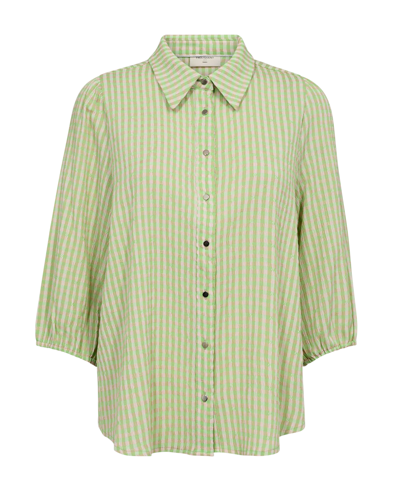 Skjorte fra Freequent i en blød kvalitet med et flot, ternet print. Skjorten er enkel i modellen med trekvartlange ballonærmer, knaplukning, krave, læg på ryggen samt en regulær pasform. Trekvartlange ballonærmer Krave Knaplukning Regulær pasform Læg Ternet