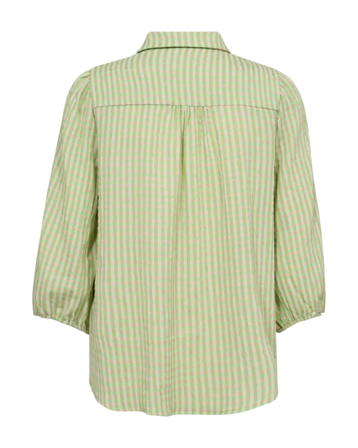 Skjorte fra Freequent i en blød kvalitet med et flot, ternet print. Skjorten er enkel i modellen med trekvartlange ballonærmer, knaplukning, krave, læg på ryggen samt en regulær pasform. Trekvartlange ballonærmer Krave Knaplukning Regulær pasform Læg Ternet