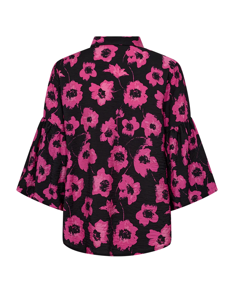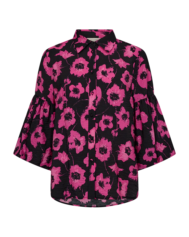 Skjorte fra Freequent i en blød kvalitet med et blomstret print. Skjorten er enkel i modellen med knaplukning, krave samt korte ballonærmer med 'drop shoulders', der fremhæver skjortens løse pasform.