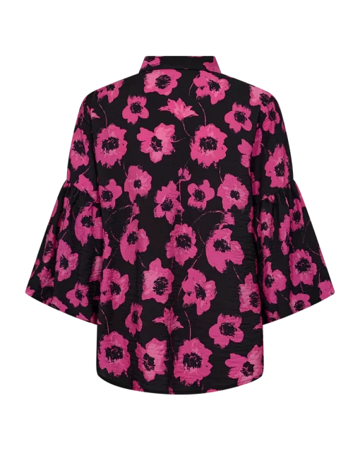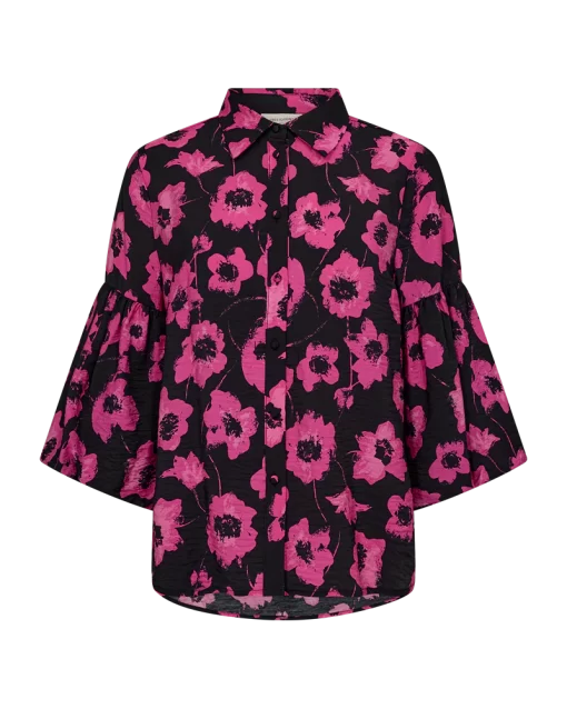 Skjorte fra Freequent i en blød kvalitet med et blomstret print. Skjorten er enkel i modellen med knaplukning, krave samt korte ballonærmer med 'drop shoulders', der fremhæver skjortens løse pasform.
