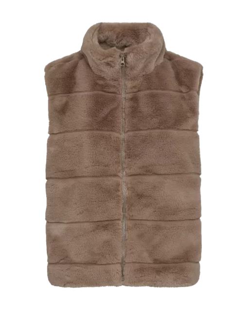 Vest fra Freequent i den smukkeste 'faux fur'-kvalitet. Vesten er enkel i modellen med lynlåslukning på fronten, en lige pasform samt en høj kravekant. Modellen bruger størrelse S og er 176 cm høj.