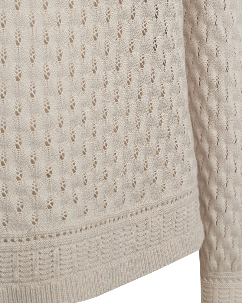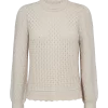 Pullover fra Freequent i en blød kvalitet med det fineste mønster. Derudover har pulloveren en løs pasform samt blondekanter i den runde halsudskæring, de lange pufærmer og i bundkanten. En detalje, der fremhæver det feminine udtryk. Lange pufærmer Rund halsudskæring Løs pasform Blondekanter Mønstret Længde fra skulder