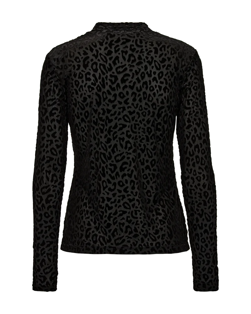 Bluse fra Freequent i en transparent mesh-kvalitet med burnout velourmønster. Derudover er blusen enkel i modellen med lange ærmer, en høj hals samt en smal pasform. Lange ærmer Høj hals Smal pasform Transparent Velourmønster