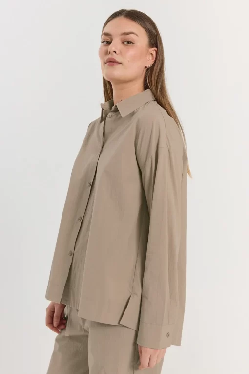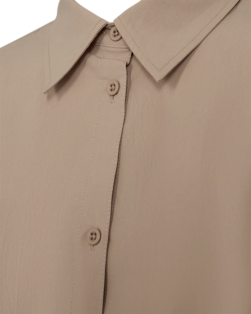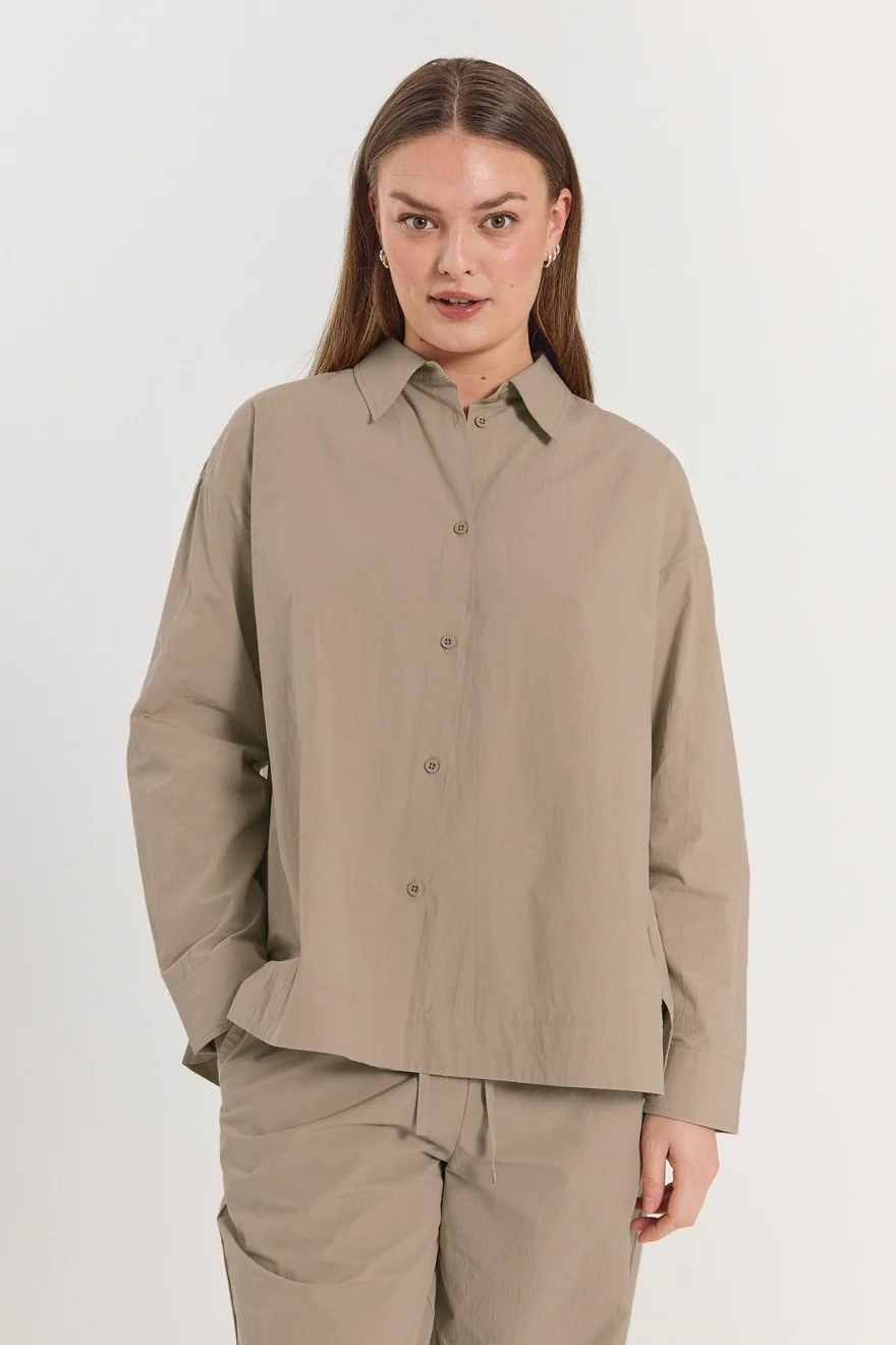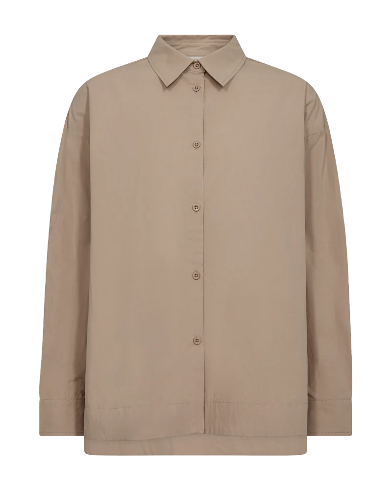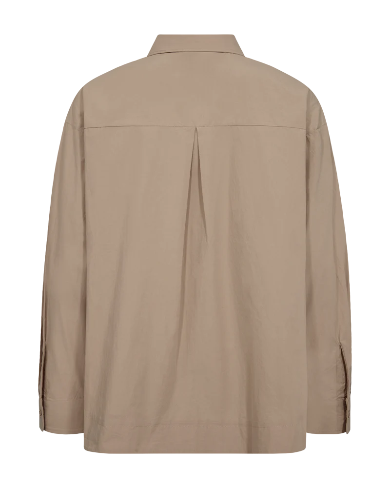 Skjorte fra Freequent i en blød kvalitet. Skjorten er enkel i modellen med knaplukning på fronten, box pleat på ryggen samt lange ærmer med drop shoulders, der understreger den vide pasform. Lange ærmer med drop shoulders Knaplukning på fronten Box pleat på ryggen Vid pasform Modellen bruger størrelse S og er 176 cm hø