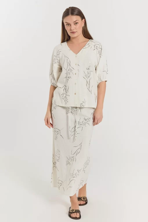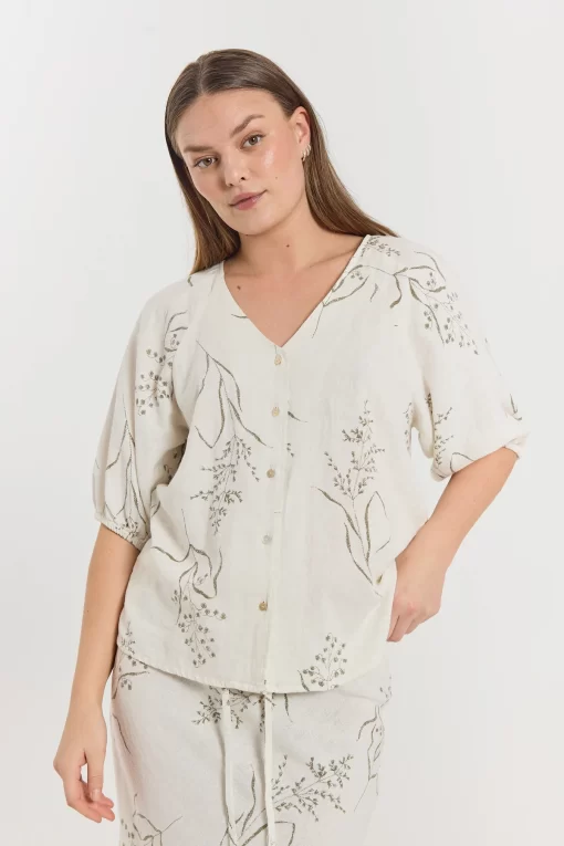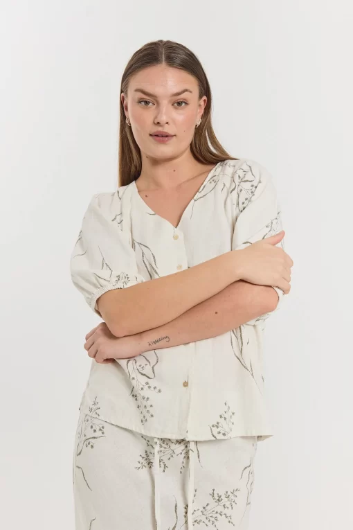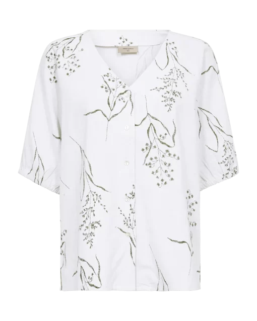 Freequent Fqlaluna – Skjorte Med Blomstret Print – Hvid Og Grøn Brilliant White W Deep L Green | Kvinder Skjorter