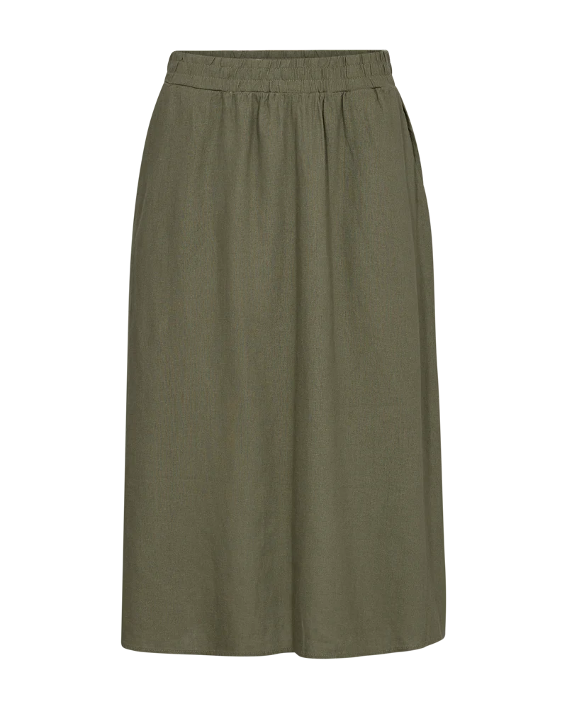 Nederdel fra Freequent i en let kvalitet. Nederdelen er enkel i modellen med en bred elastik i taljen, sidelommer samt en let A-facon. Elastik i taljen Sidelommer A-facon Let kvalitet