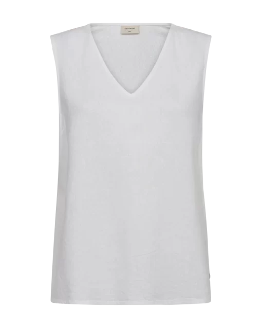 Top fra Freequent i en let kvalitet. Toppen er enkel i modellen med en løs pasform, V-udskæring, brede skulderstropper samt knapper i den ene side. En detalje, der giver en flot effekt. Brede skulderstropper V-udskæring Løs pasform Knapper i siden