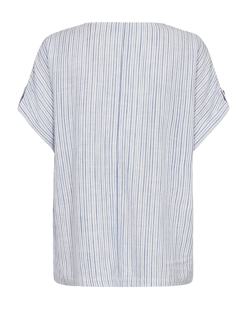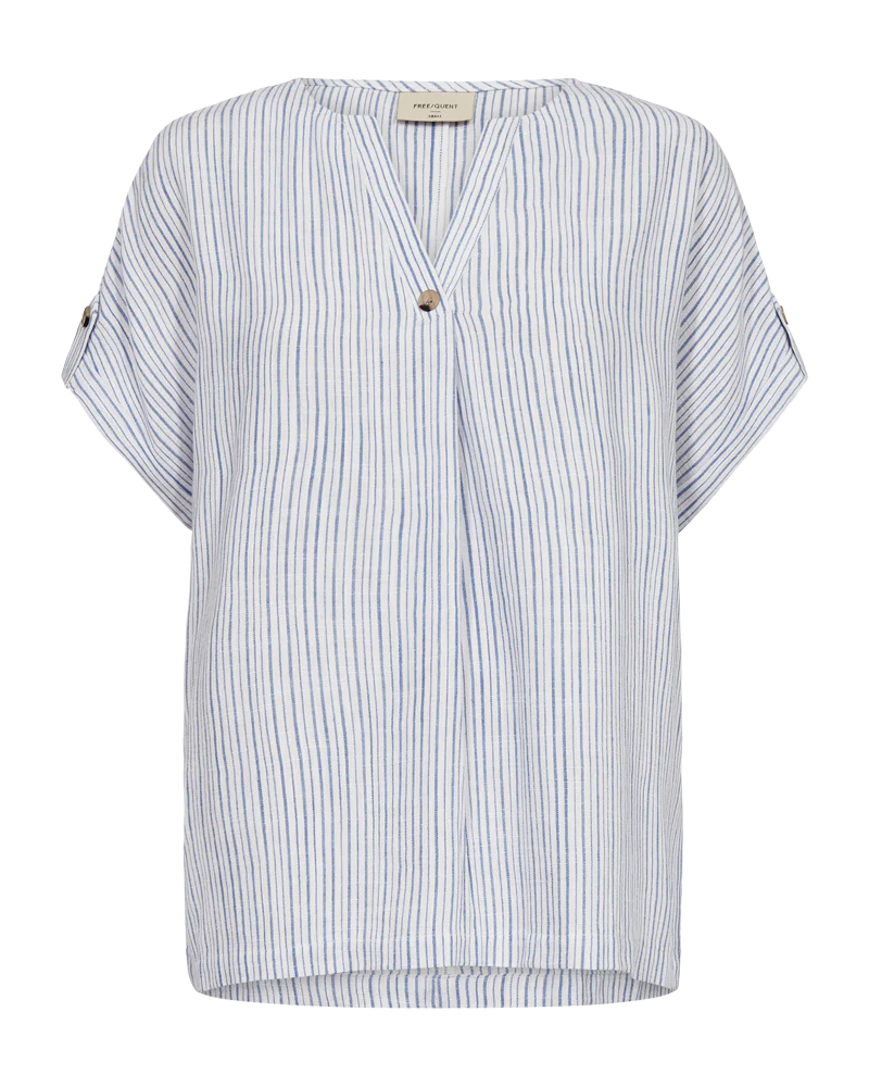 Freequent Fqlavara – Bluse I Hørblanding – Hvid Og Blå Brilliant White W. Ultramarine | Kvinder Bluser