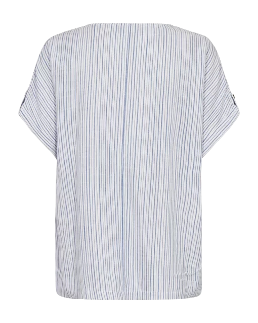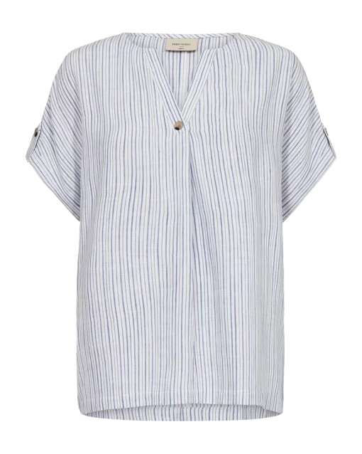 Freequent Fqlavara – Bluse I Hørblanding – Hvid Og Blå Brilliant White W. Ultramarine | Kvinder Bluser