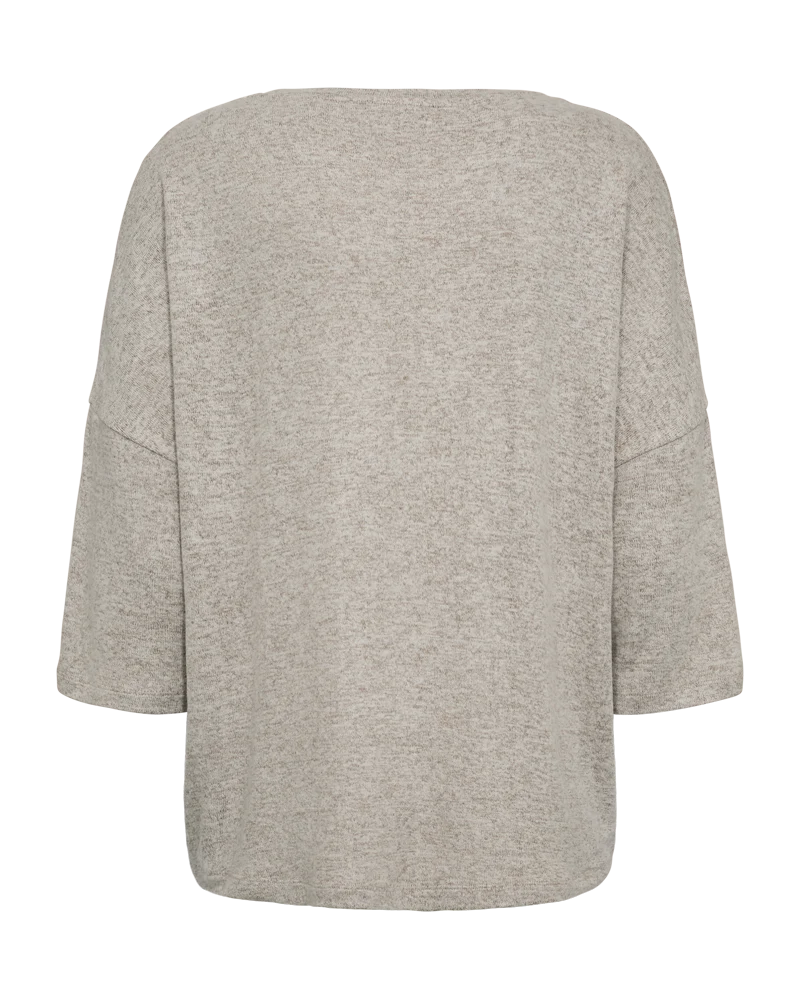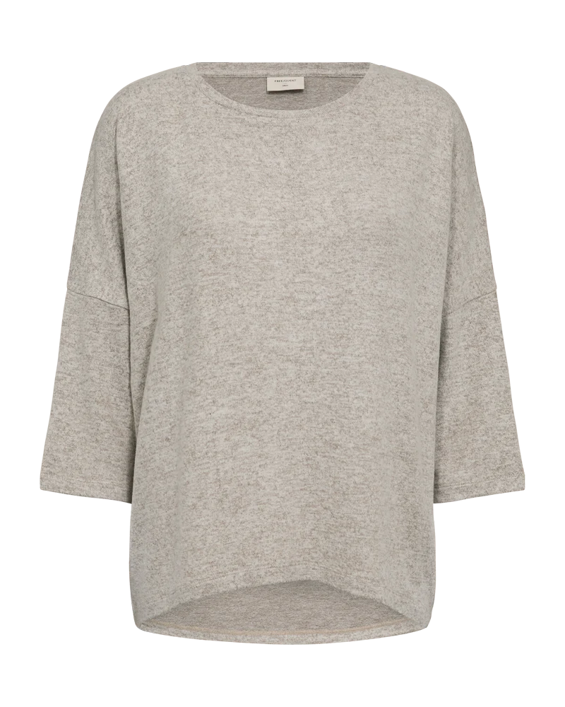 Bluse fra Freequent i en blød, finstrikket kvalitet. Blusen har en rund halsudskæring med en smal ribkant samt trekvarte ærmer med drop shoulders, der understreger den løse pasform. Trekvarte ærmer med drop shoulders Rund halsudskæring med smal ribkant Løs pasform Finstrikket