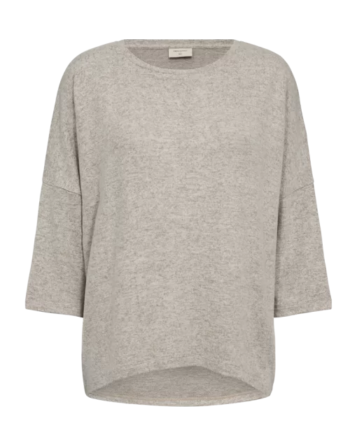 Bluse fra Freequent i en blød, finstrikket kvalitet. Blusen har en rund halsudskæring med en smal ribkant samt trekvarte ærmer med drop shoulders, der understreger den løse pasform. Trekvarte ærmer med drop shoulders Rund halsudskæring med smal ribkant Løs pasform Finstrikket