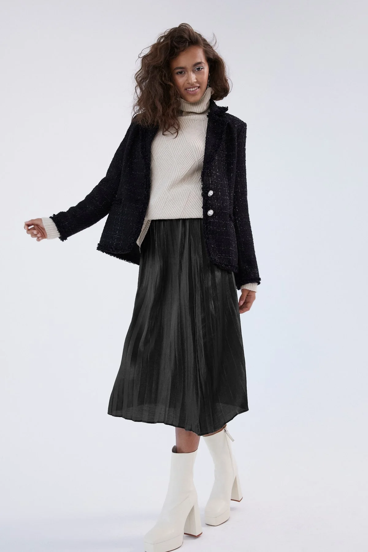 Nederdel i en let kvalitet med glimmereffekt og en plisseret struktur. Nederdelen er enkel i modellen med en løs pasform samt en bred elastikkant i taljen. En elegant, plisseret nederdel i en lækker kvalitet. Glimmereffekt Plisseret Løs pasform Elastikkant i taljen