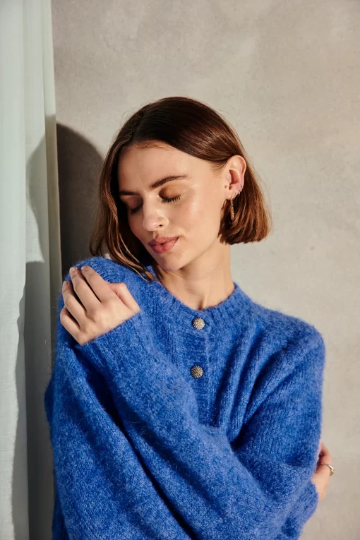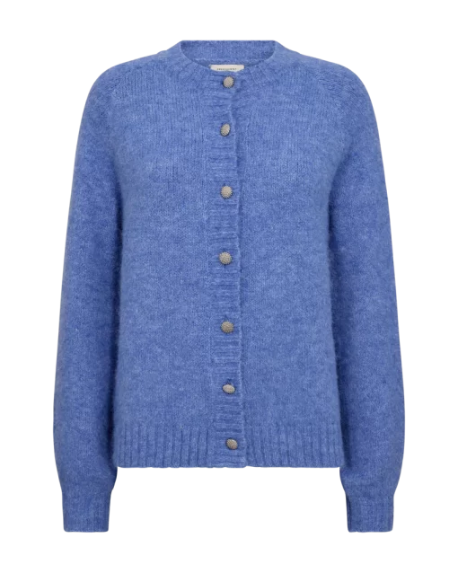 Cardigan fra Freequent i en blød, strikket kvalitet af genanvendt polyester. Cardiganen er enkel i modellen med lange ballonærmer, ribkanter, en løs pasform samt smukke knapper på fronten. En detalje, der giver en flot effekt. Lange ballonærmer Knaplukning Løs pasform Ribkanter Genanvendt