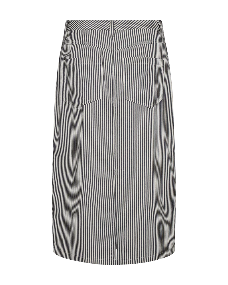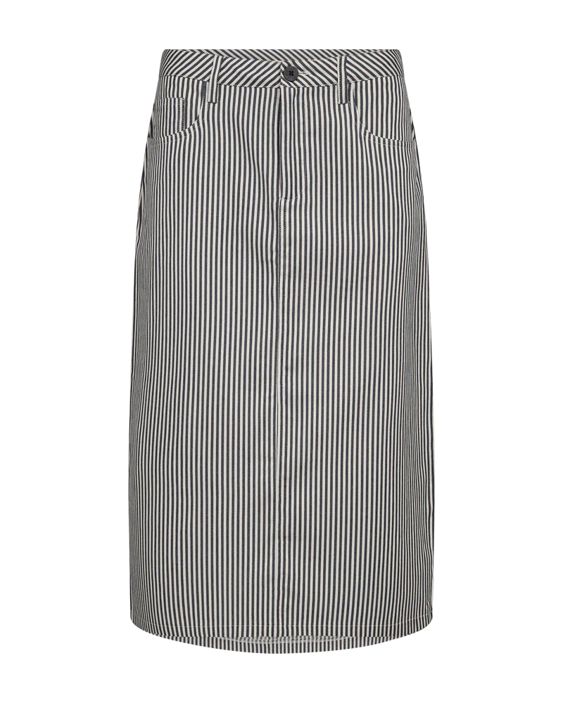 Nederdel fra Freequent i en blød kvalitet med et stribet print. Nederdelen er enkel i modellen med knap- og lynlåslukning, side- og baglommer, en høj talje, slids bagpå samt en elegant, lige pasform.