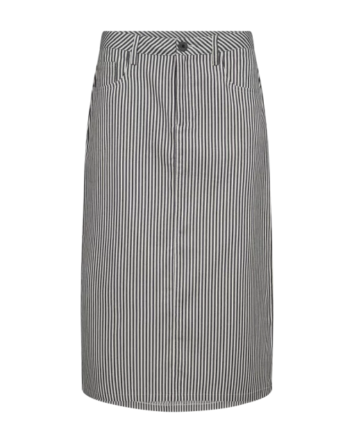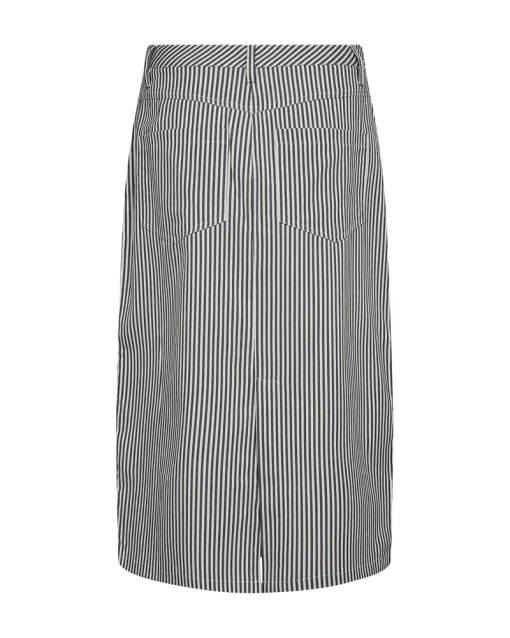Nederdel fra Freequent i en blød kvalitet med et stribet print. Nederdelen er enkel i modellen med knap- og lynlåslukning, side- og baglommer, en høj talje, slids bagpå samt en elegant, lige pasform.