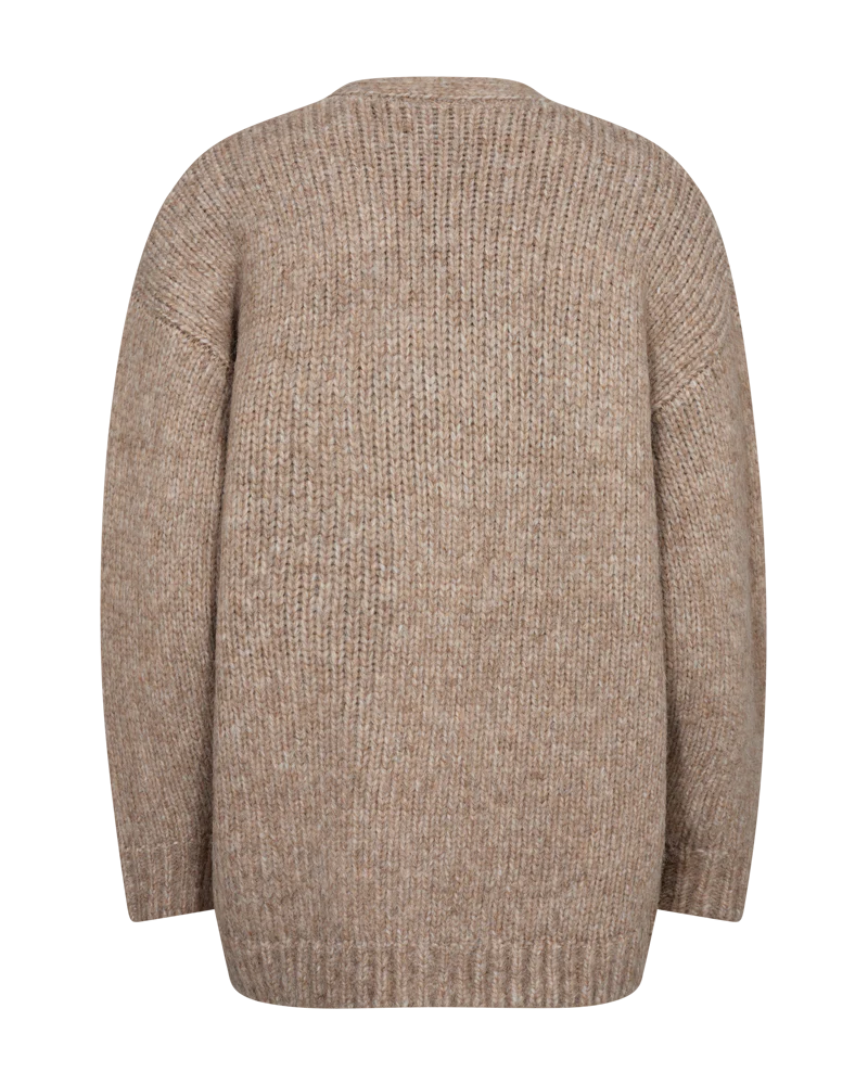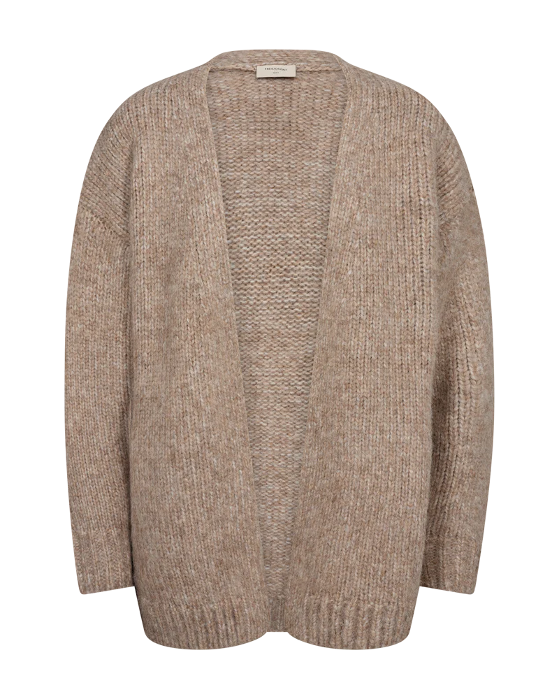 Cardigan fra Freequent i den blødeste blanding af genanvendt polyester og uld. Cardiganen er enkel i modellen med en åben front samt lange ærmer med drop shoulders, der fremhæver den løse pasform. Lange ærmer Åben front Løs pasform Drop shoulders Genanvendt
