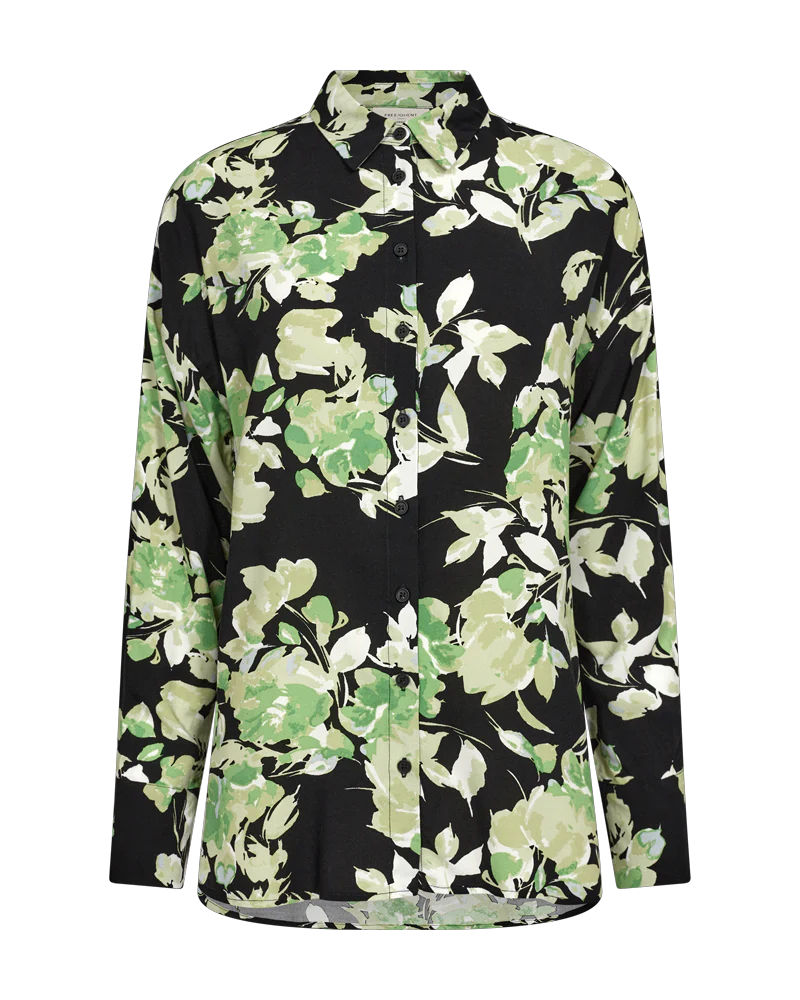 Freequent Fqmison – Skjorte Med Blomstret Print – Sort Og Grøn Black W. Piquant Green | Kvinder Skjorter