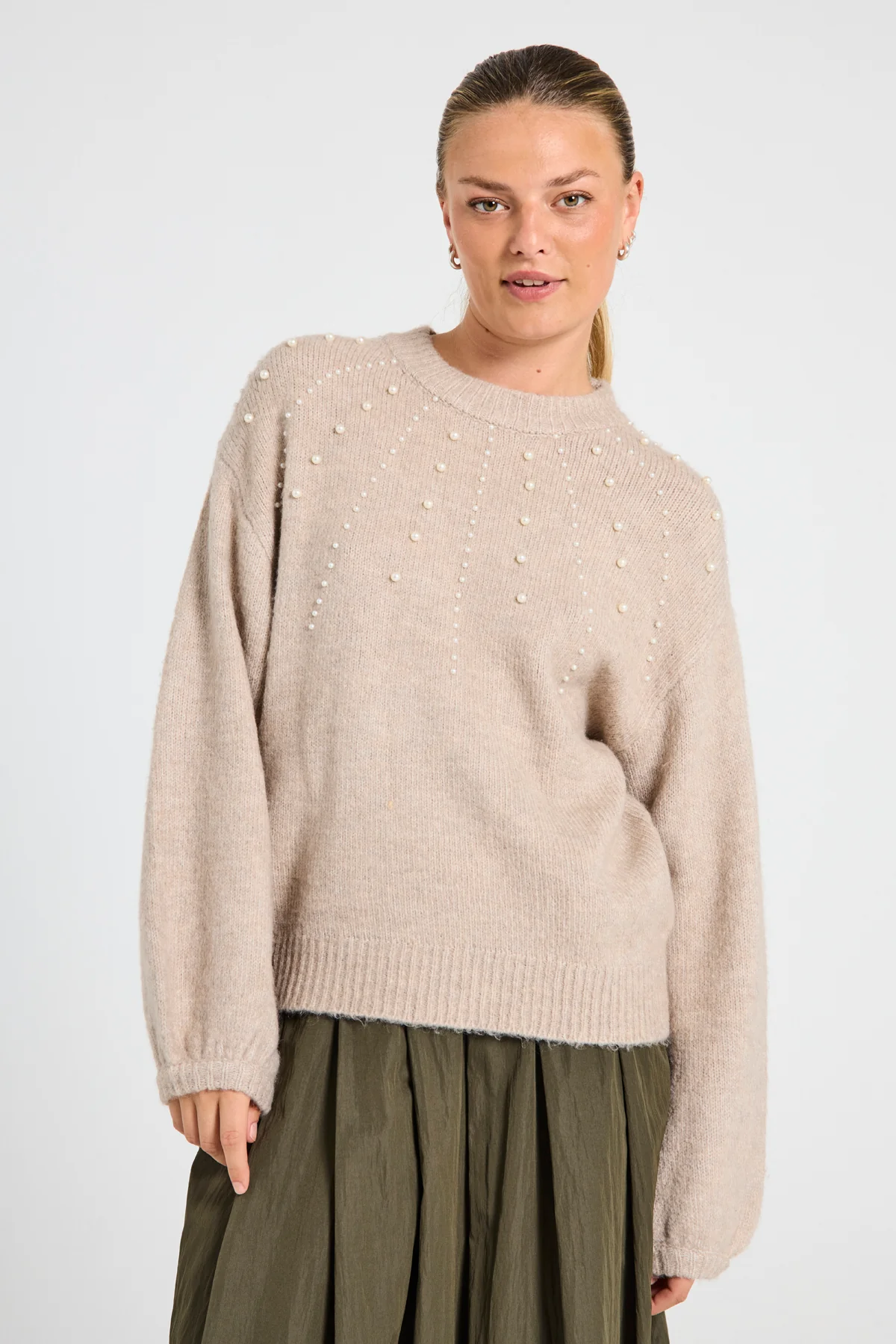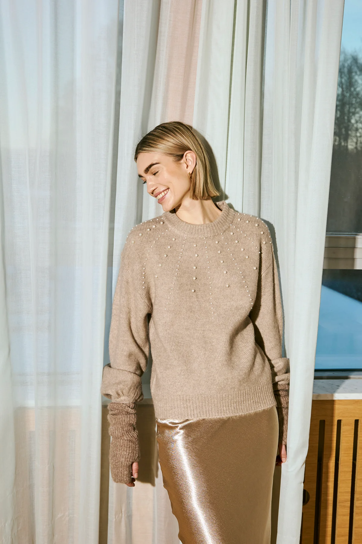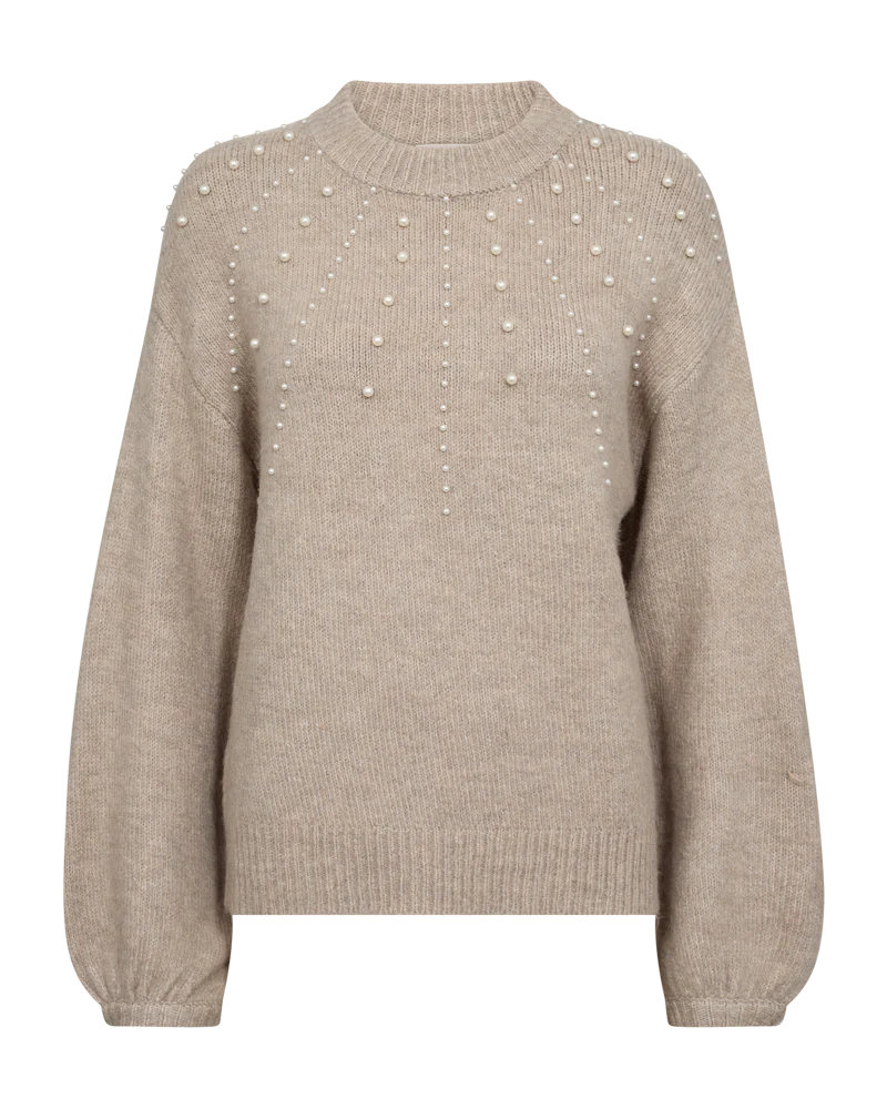 Pullover fra Freequent i en blød, finstrikket kvalitet. Pulloveren er enkel i modellen med lange ballonærmer, en rund halsudskæring, en løs pasform samt perler på fronten i et elegant mønster. En detalje, der giver en flot effekt. Lange ballonærmer Rund halsudskæring Løs pasform Finstrikket Perler