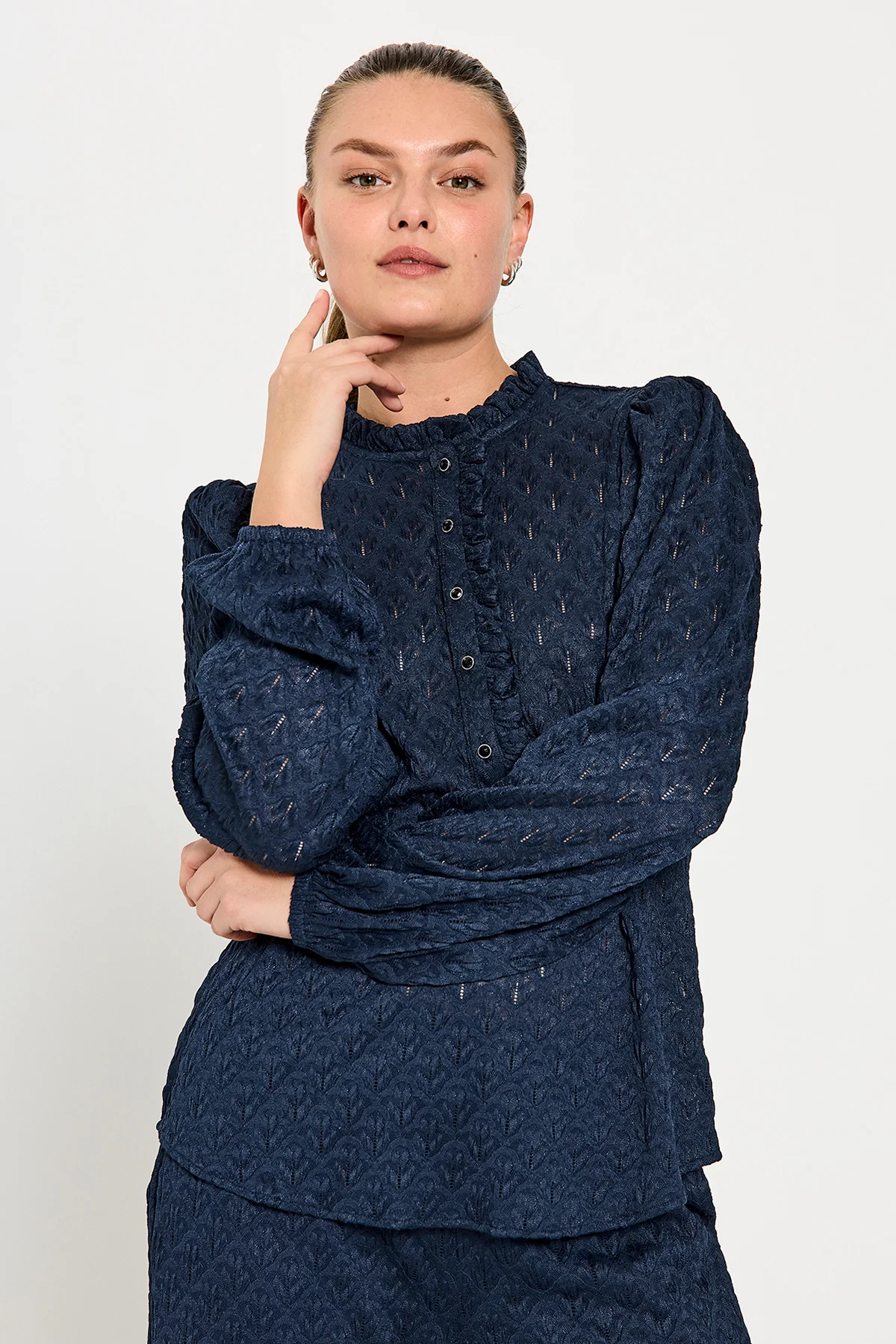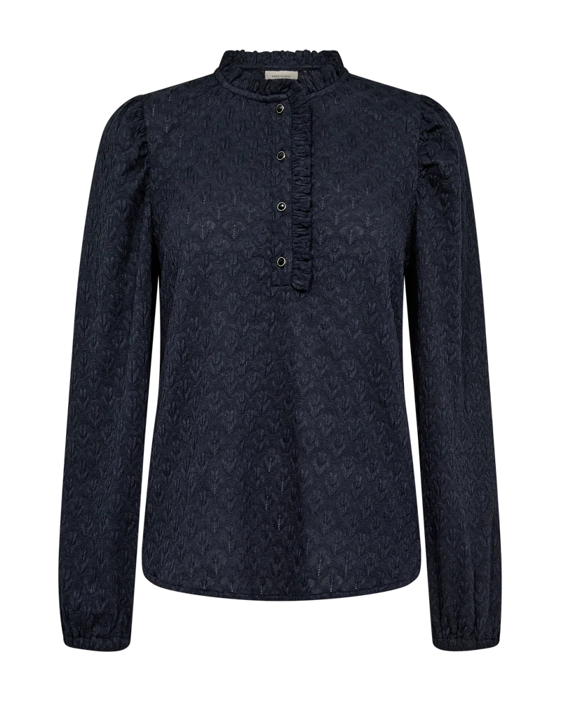 Freequent Fqrigga – Bluse Med Blonder – Blå Navy Blazer | Kvinder Bluser