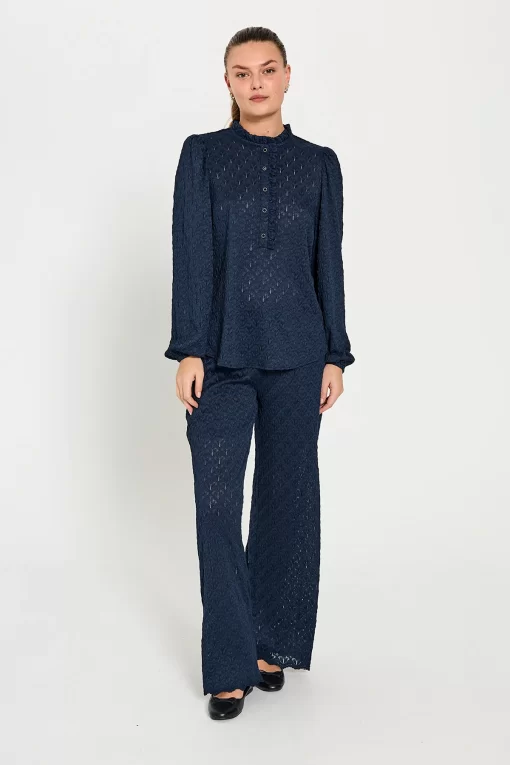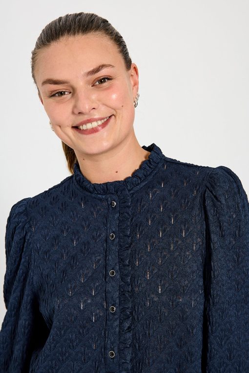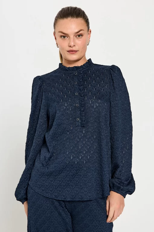 Freequent Fqrigga – Bluse Med Blonder – Blå Navy Blazer | Kvinder Bluser