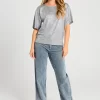 T-shirt fra Freequent i en smuk kvalitet med metallisk folie printet på. Derudover er T-shirten enkel i modellen med korte ærmer, en rund halsudskæring samt drop shoulders, der understreger den løse pasform. Korte ærmer Rund halsudskæring Løs pasform Metallisk folieprint Drop shoulders Længde fra skulder i str. S er 60