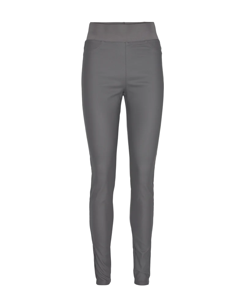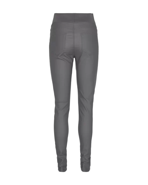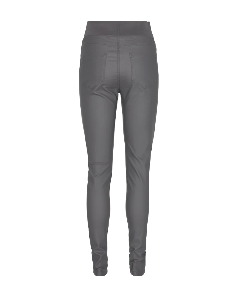 Bukser fra Freequent i en coated kvalitet med power stretch. Bukserne er enkle i modellen med en bred elastik i den høje talje, baglommer samt en tætsiddende pasform. Tætsiddende pasform Høj talje Elastik i taljen Baglommer