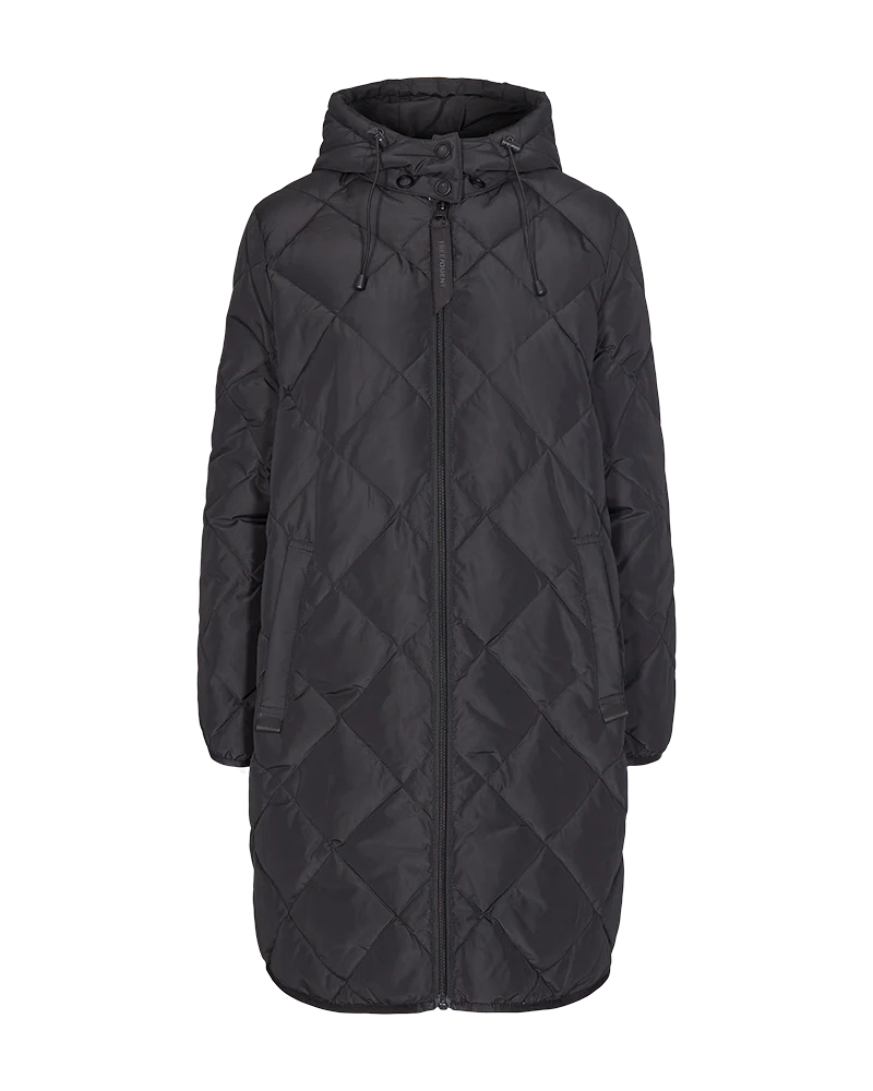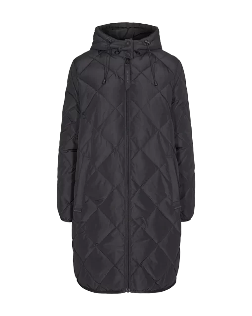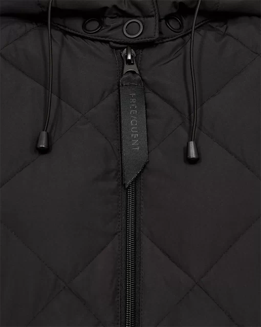 Jakke fra Freequent i en vatteret kvalitet med et quiltet mønster. Jakken er enkel i modellen med smalle elastikkanter i de lange ærmer, lynlåslukning, snøre i hætten samt sidelommer. Lange ærmer Lynlåslukning Hætte Sidelommer Vatteret Quiltet