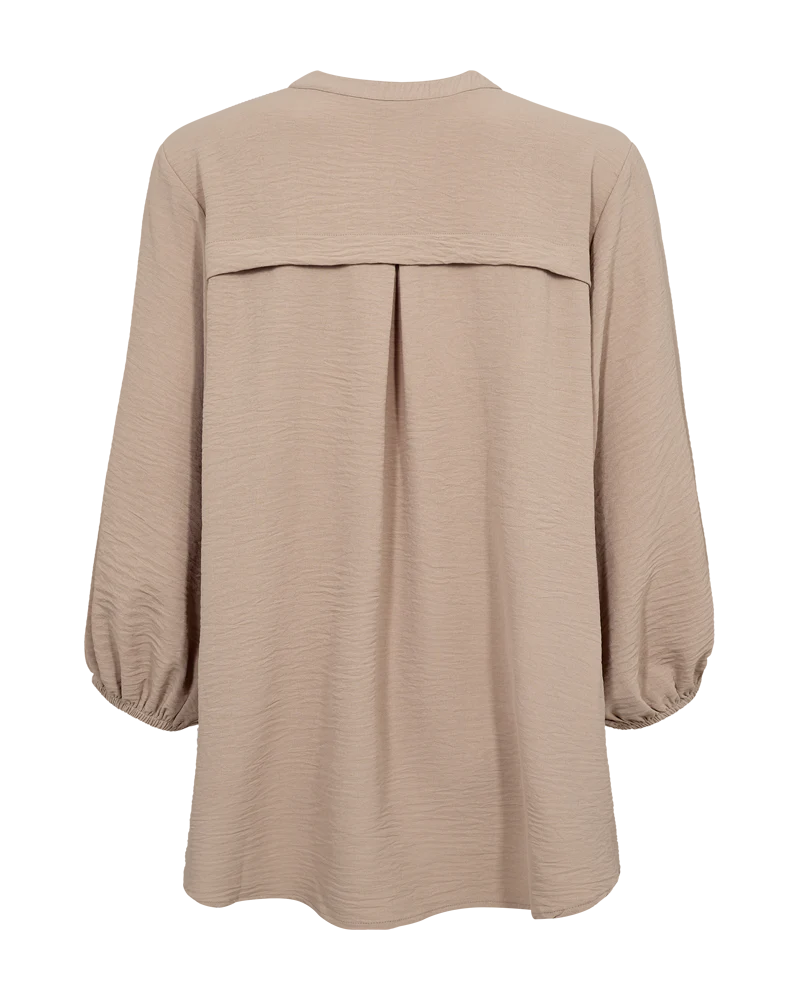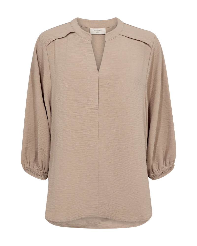 Bluse fra Freequent i en let kvalitet. Blusen er enkel i modellen med trekvartlange ballonærmer, V-udskæring, læg front og bag samt en elegant, vid pasform. Trekvartlange ballonærmer V-udskæring Vid pasform Læg Let kvalitet