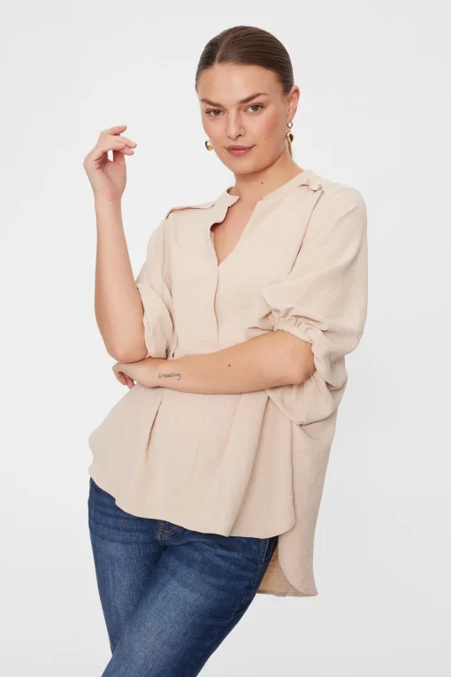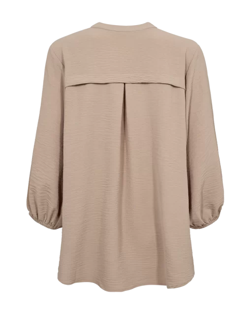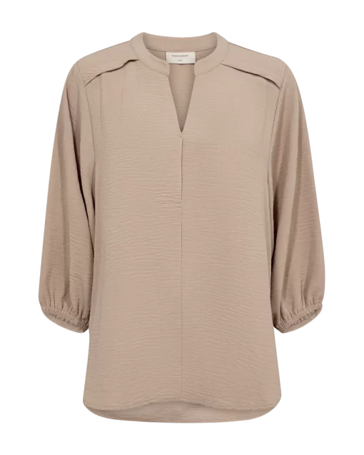 Bluse fra Freequent i en let kvalitet. Blusen er enkel i modellen med trekvartlange ballonærmer, V-udskæring, læg front og bag samt en elegant, vid pasform. Trekvartlange ballonærmer V-udskæring Vid pasform Læg Let kvalitet