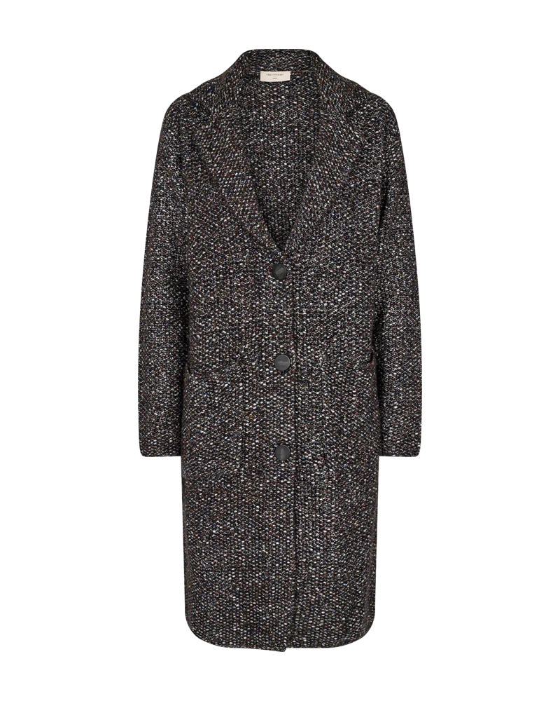 Lang meleret jakke fra Freequent i en lækker kvalitet. Jakken er er enkel i modellen med lange ærmer, et bredt revers samt en dyb V-udskæring. Derudover har jakken frontlommer, smuk knaplukning på fronten samt fås i flere farver. En klassisk jakke, i en skøn kvalitet.
